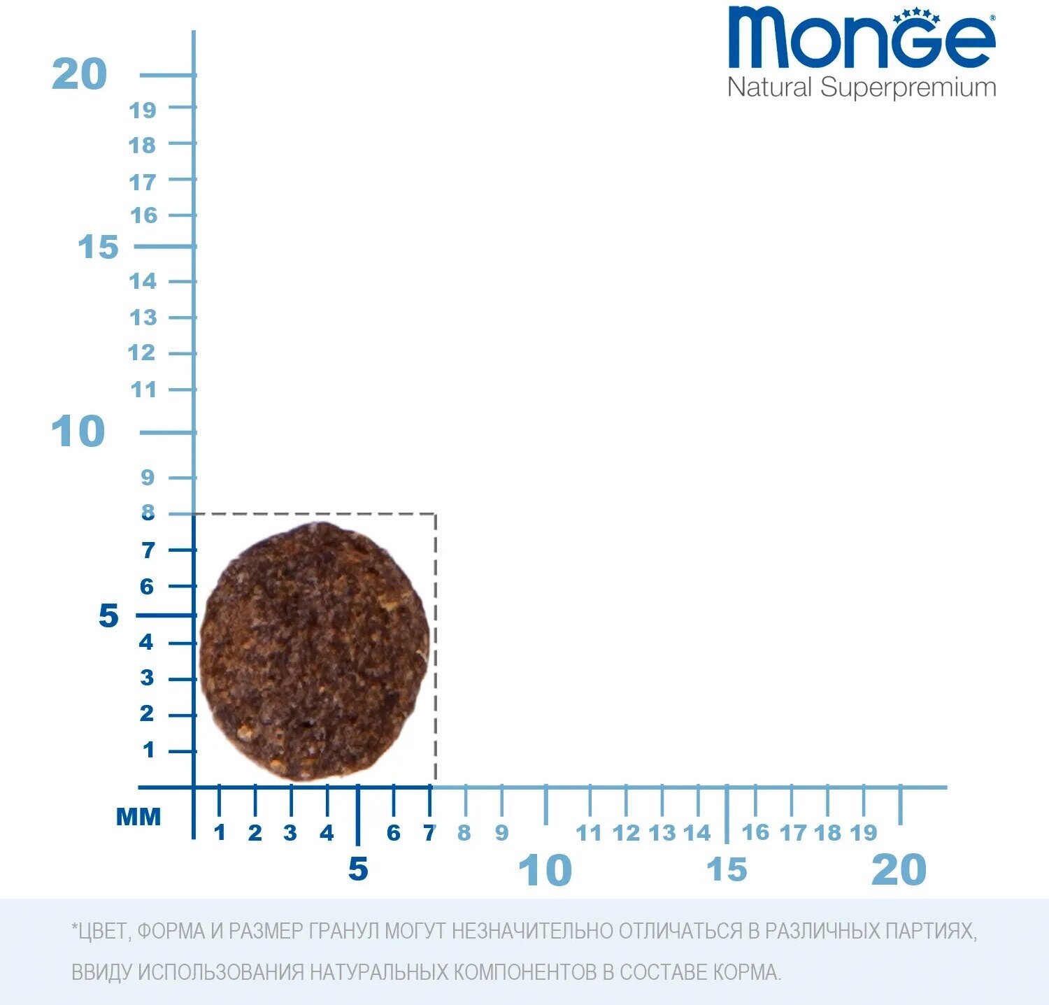Небольшие гранулы, быстро размачиваются, а если я не успеваю долго размачивать, то щенку все равно удобно их есть