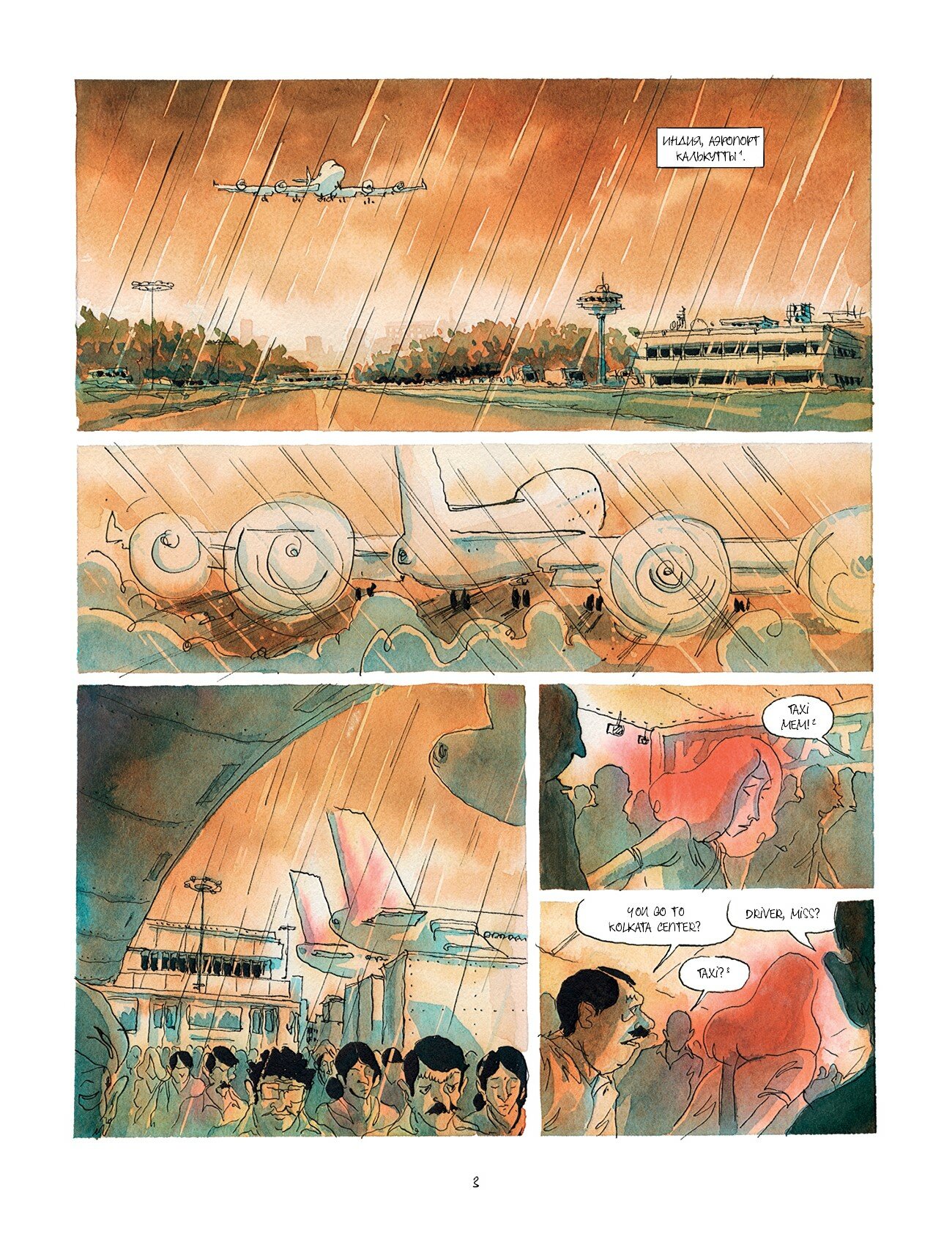 Аэропорт Калькутты. В пёстрой толпе прибывших выделяется Аделаида. С первого взгляда ясно: она приехала сюда не ради селфи на фоне древних храмов. Её жених Матьё уже несколько недель не выходит на связь. Полицейские не спешат с поисками, но Аделаида находит верного помощника в лице молодого и сообразительного таксиста Имрана. Сражаться придётся не только с коррумпированными местными чиновниками, но и с крупной транснациональной корпорацией, готовой на всё ради своих интересов. Блуждая по городским лабиринтам, она чувствует: Матьё рядом, и ему грозит опасность... Захватывающий сценарий Эдди Симона и атмосферные рисунки Пьера-Анри Гомона не дадут читателю шанса расслабиться!