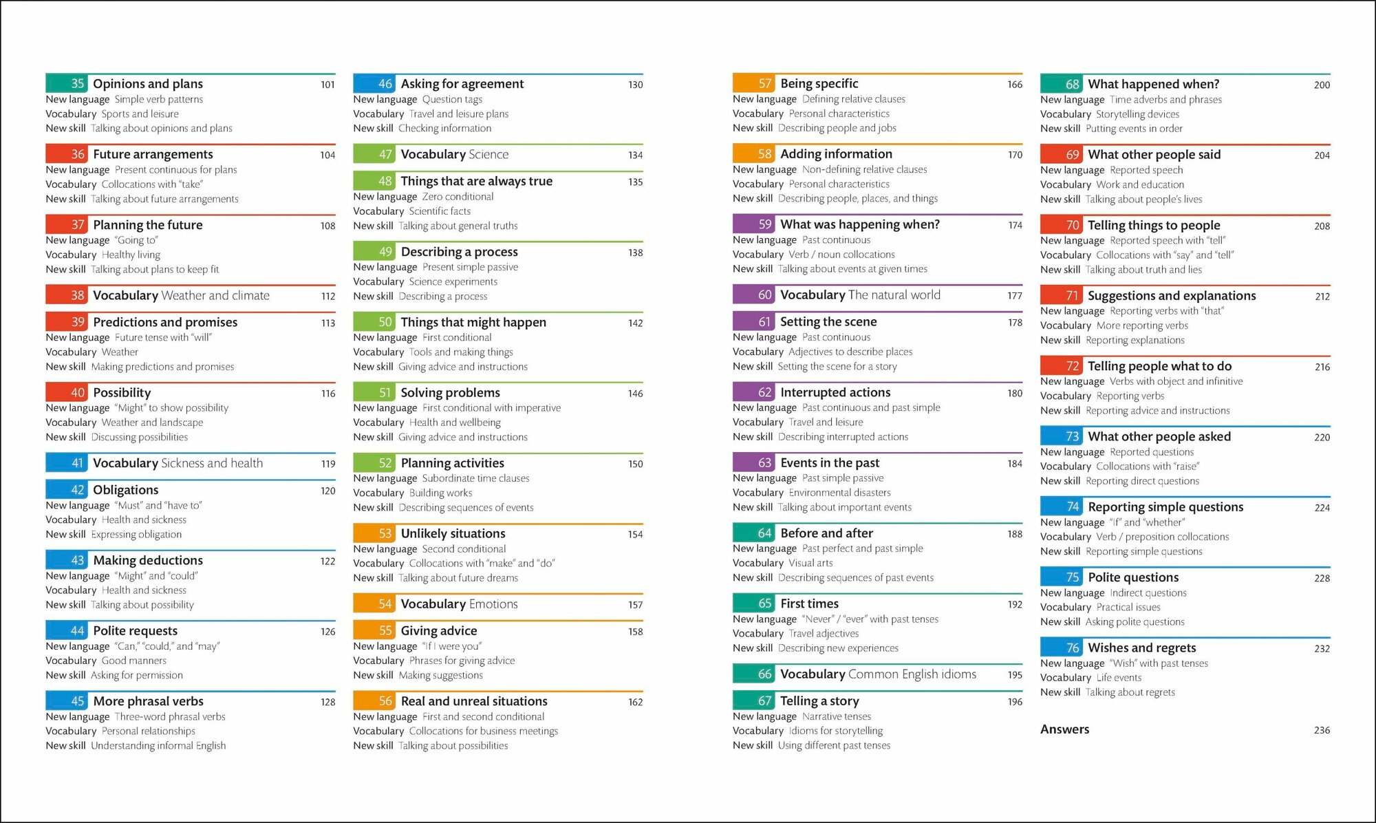 English for Everyone is an exciting and comprehensive self-study course for adults learning English as a foreign language. This course is a unique new series with a visual, engaging, and easy to follow style to make the English language easy to learn. Learn English by reinforcing key language skills, grammar rules, and vocabulary with listening, speaking, reading, and writing exercises. This unique course is easy to use, starting at beginner level and working up to advanced English to help you grow in confidence as you learn. This Level 3 Intermediate guide introduces topics such as skills and tasks, giving instructions, and relationships and problem solving. Audio material is provided at every stage through the English For Everyone website and Android/iOS apps to provide vital experience of spoken English and make even tricky phrases easy to understand. Perfect for personal study or to support exams including TOEFL and IELTS, English for Everyone is suitable for all levels of English language learners.