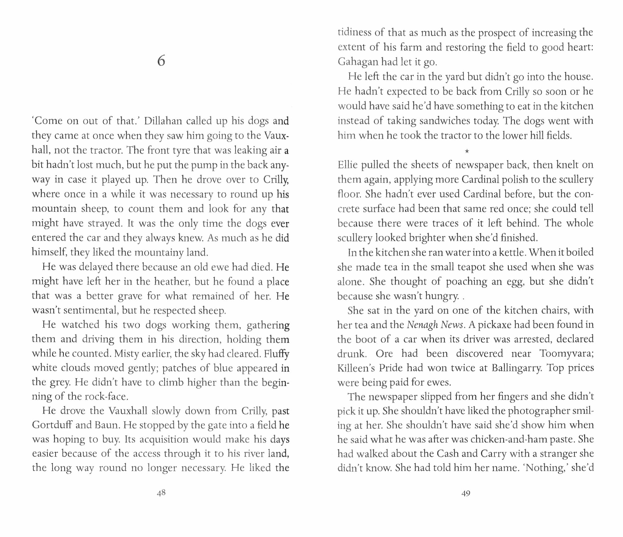 Rathmoye, Ireland, in the middle of the last century, and into town comes a stranger on the day of Eileen Connulty's funeral. Taking unwanted and unasked for photographs, Florian Kilderry upsets its carefully settled status quo. But Ellie, a young convent girl married to a farmer still mourning his first wife, cannot help but be drawn to this trespassing youth. Over the course of a long, warm summer Ellie and Florian form an attachment that sleepy Rathmoye cannot ignore . . .