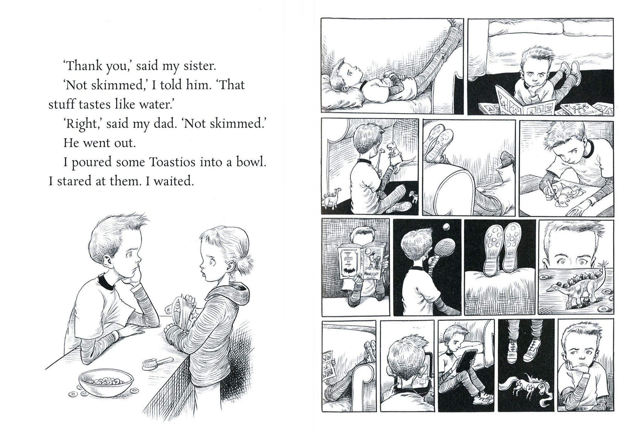 Mum's away. Dad's in charge. There's no milk. So Dad saves the day by going to buy some.