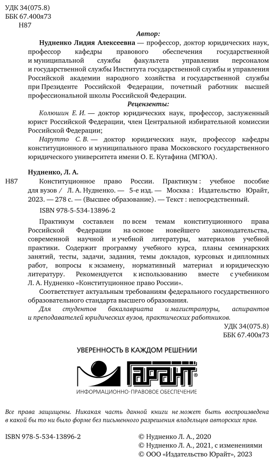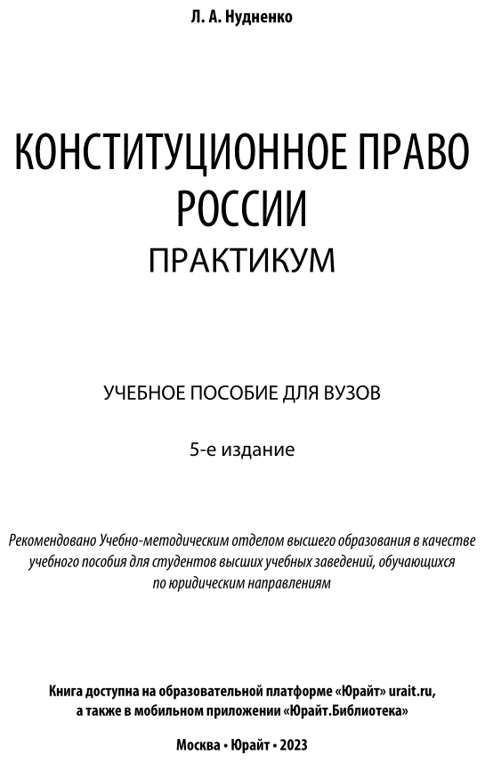 Конституционное право России. Практикум 5-е изд. Учебное пособие для вузов (Лидия Алексеевна Нудненко); ЮРАЙТ, 2021