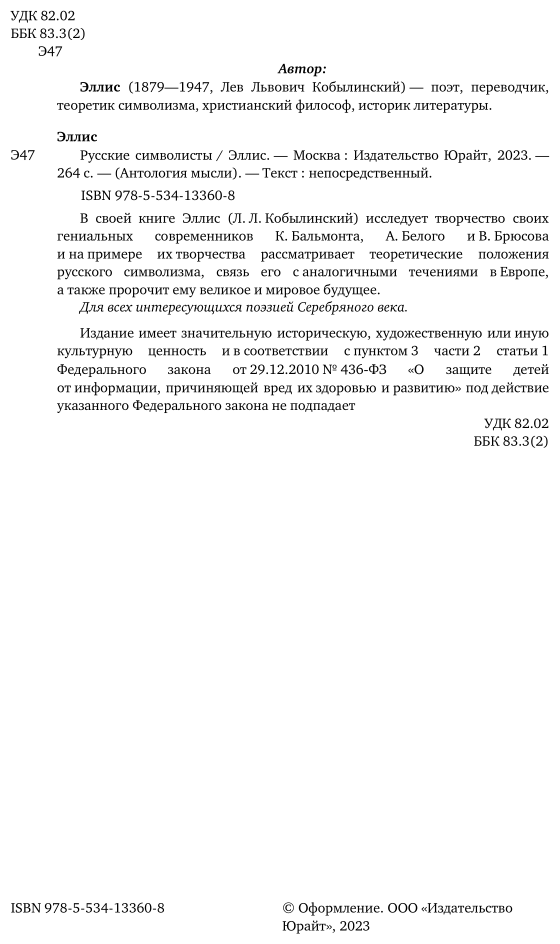 Книга: Русские символисты (– Эллис); ЮРАЙТ, 2021