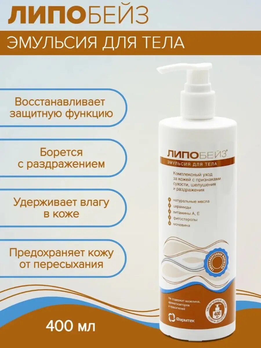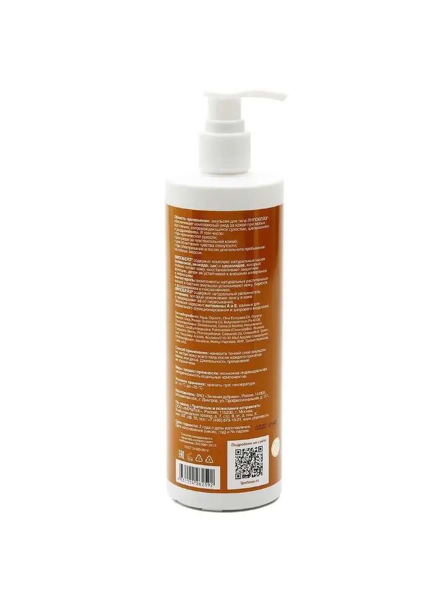 | Полное наименование | Липобейз, Эмульсия для тела, 400 мл |