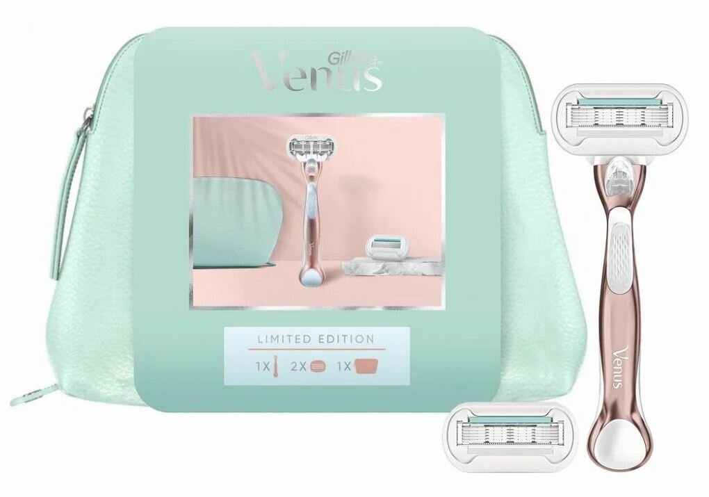 Сервис сравнения цен СкидкаГИД предлагает сравнить цены на товар «Gillette Venus (Жиллетт) Подарочный набор бритва Extra Smooth Sensitive Rosegold с 2 сменными кассетами + сумка для косметики Gillette (Shanghai) Ltd CN (1302630)»
