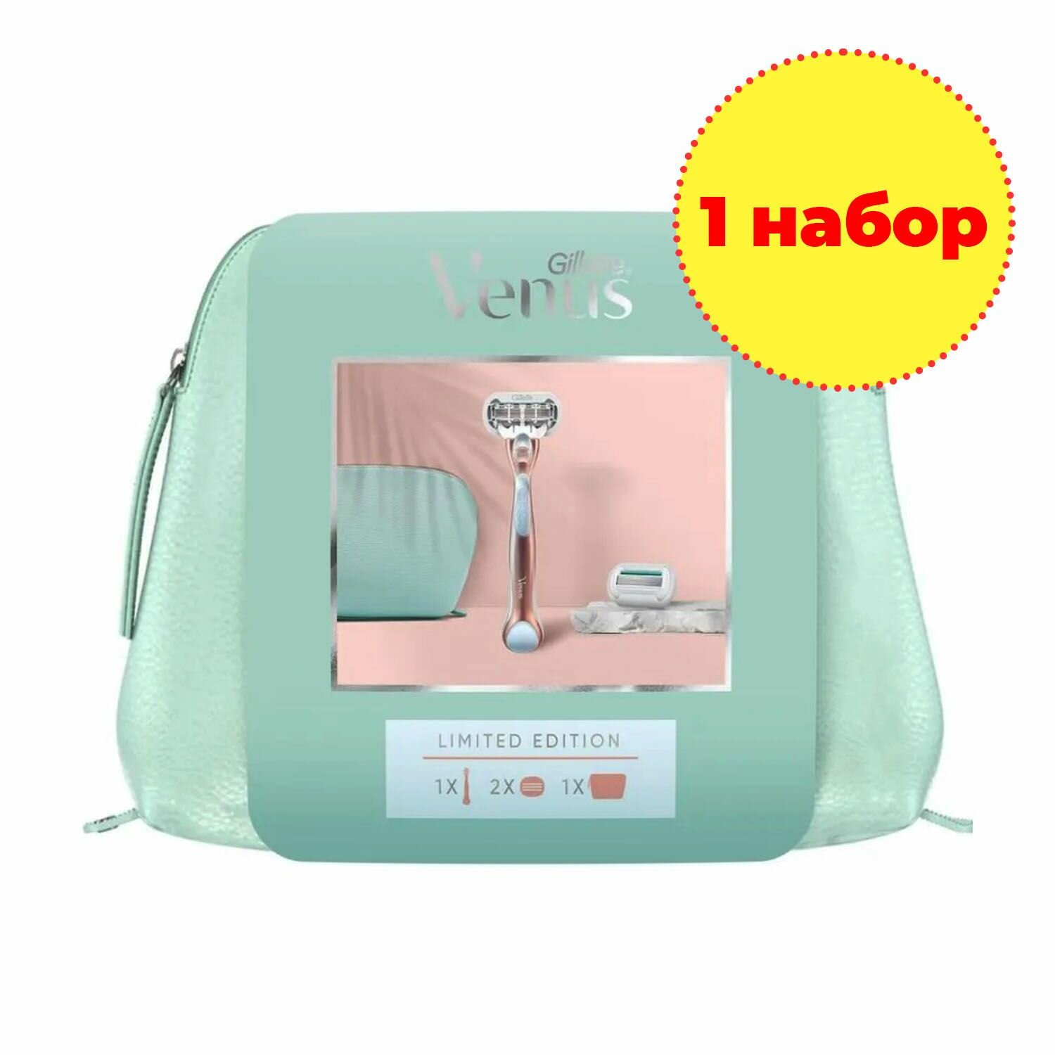 На сегодняшний день товар «Gillette Venus (Жиллетт) Подарочный набор бритва Extra Smooth Sensitive Rosegold с 2 сменными кассетами + сумка для косметики Gillette (Shanghai) Ltd CN (1302630)» можно купить с кешбеком в 1 магазине: Яндекс.Маркет