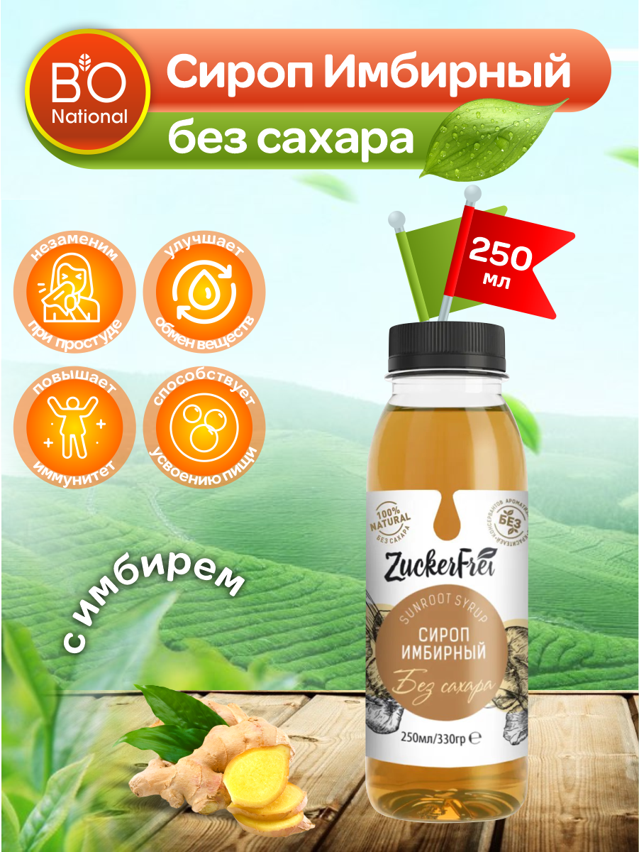 | Состав | природная фруктоза (топинамбур), вода, имбирь |