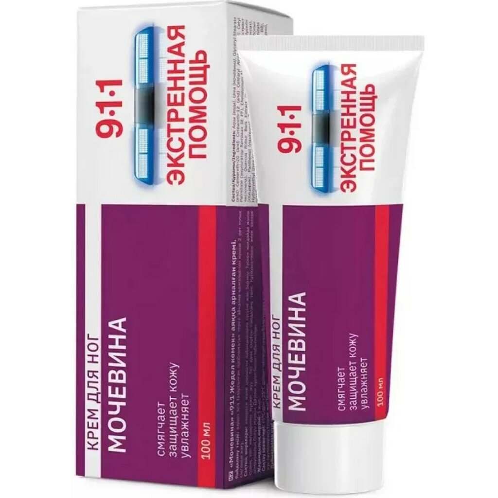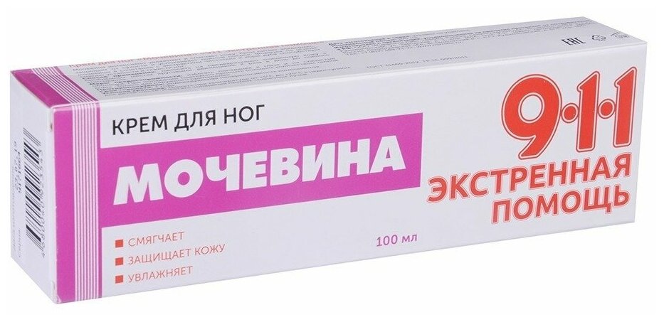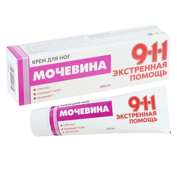 Крем 911 Экстренная помощь «Мочевина» помогает убрать застарелые мозоли и натоптыши. Мочевина в составе интенсивно смягчает и увлажняет кожу стоп. Экстракты чистотела и коры дуба — улучшают циркуляцию крови, избавляют от усталости и тяжести в ногах. Благодаря легкой текстуре крем быстро впитывается. Большая крышка — тюбик можно поставить на полку. Не является лекарственным средством.йСпособ применения: массажными движениями наносить немного средства на чистые сухие проблемные участки кожи 2 раза в день.