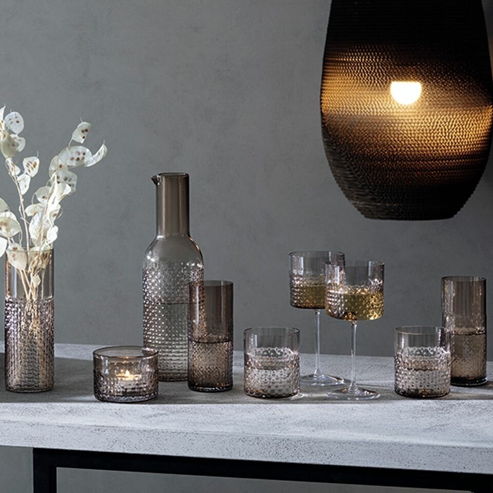Набор из 2 тумблеров предназначен для сервировки безалкогольных и крепких алкогольных напитков, а также коктейлей со льдом. Для изготовления посуды используется выдувное стекло ручной работы. Комбинируйте набор с другими предметами коллекции для создания законченной композиции. Особенности: объем одного тумблера: 330 мл размеры: высота – 9 см, ширина – 8 см ручная работа с утонченной отделкой рекомендуется мыть вручную в тёплой мыльной воде и вытирать насухо мягкой тканью иногда в готовом изделии из выдувного стекла встречаются пузырьки воздуха — это не является бракомКоллекция – это посуда и аксессуары для сервировки напитков и декора помещения. Изделия выполнены в необычном дизайне с эффектом «плетеной» фактуры. Особенность производства состоит в помещении металлической сетки внутрь деревянной формы, в которой выдувается изделие. Коллекция представлена в двух вариациях: из пепельно-коричневого и прозрачного стекла.