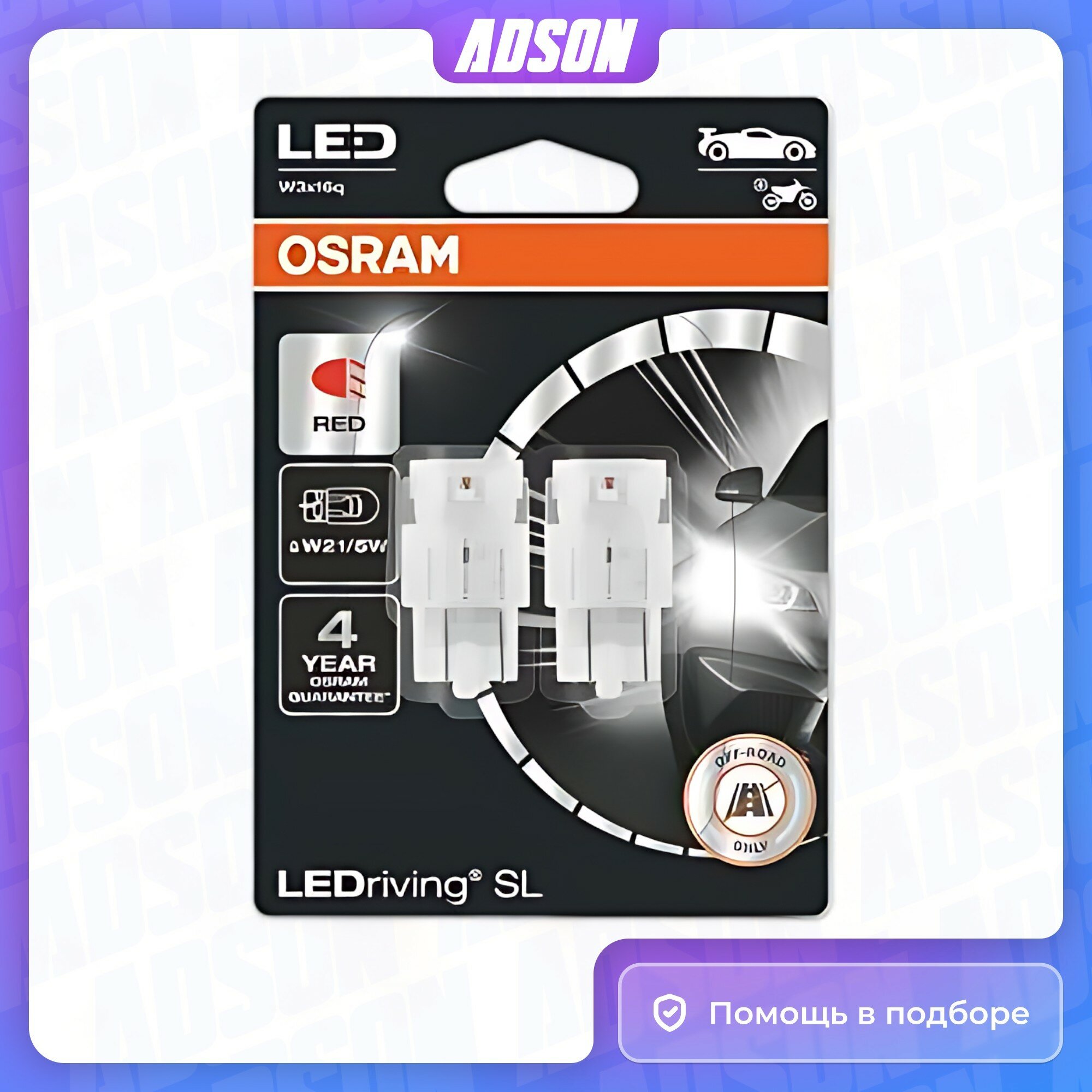 Эксплуатационный срок светодиодных автоламп Osram LEDriving (W21/5W) составляет 4000 часов. Комплект светодиодов подходит для различных видов автомобильного экстерьера. Светодиодные автолампы потребляют до 80% меньше энергии (в сравнении с обычными лампами). Длина — 47,5 мм.
