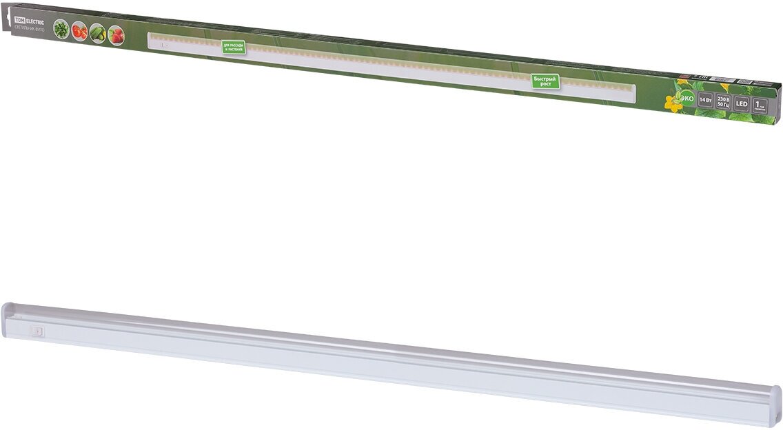 **Фитосветильник линейный светодиодный TDM Electric** предназначен для дополнительного освещения растений в период короткого светового дня, в пасмурные дни и при освещение растений при полном отсутствии солнечного света для обеспечения правильного развития и плодоношения растений.