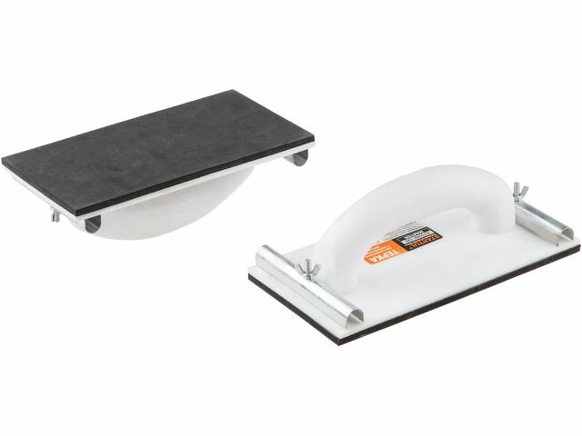 Терка для шлифования с металлическим фиксатором 230х80 мм STARTUL MASTER применяется для выравнивания штукатурных смесей при отделочных работах на поверхность стен или потолка. Посредством плавных движений, придаваемых терке, декоративная смесь частично втирается в стену, разравнивается на поверхности и доводится до финишного состояния. Представляет собой подошву, отлитую из пластика, с рукоятью и фиксаторами, предназначенными для крепления шлифшкурки.