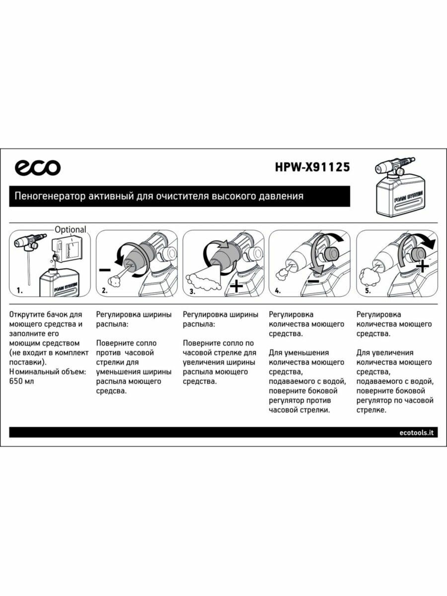 Пеногенератор для мойки ECO HPW-1718S из Китая