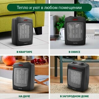 Тепловентилятор с керамическим нагревательным элементом для быстрого прогрева помещения с наименьшими затратами электроэнергии.