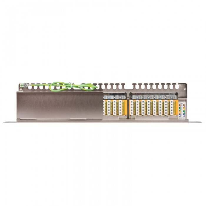 Коммутационная панель NIKOMAX 19, 1U, 24 порта, металлик используется для монтажа кабелей в различных подсистемах СКС, а также для подключения отдельных составляющих сети друг к другу коммутационными шнурами. Устройство выполнено в стальном корпусе, который полностью экранирован (гальванизирован никелем) для защиты от электромагнитных помех. Универсальные IDC контакты 110/KRONE располагаются с тыльной стороны на горизонтальной подложке. Разводка кабелей осуществляется по двум стандартам: T568 А и B. Экраны кабелей попарно заземляются на винтовые клеммы. Имеется дополнительный девятый заземляющий IDC-контакт - специально под дренажный проводник кабеля.