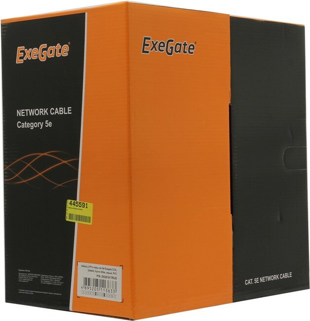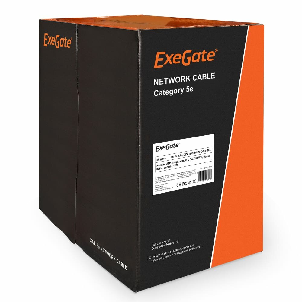 Кабель витая пара UTP 5e кат. 4 пары Exegate UTP4-C5e-CCA-S25-IN-PVC-GY-305