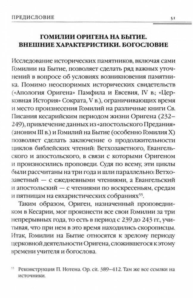 В настоящем издании представлен перевод полного корпуса гомилий Оригена на книгу Бытия, впервые публикуемый на русском языке. Перевод, снабженный введением и комментариями, выполнен на основе критического издания этих гомилий, осуществленного в серии "Sources Chretiеnnes". Издание охватывает как латинский перевод гомилий, выполненный Руфином, так и сохранившиеся греческие фрагменты. В книге эти фрагменты помещены в параллельной колонке.