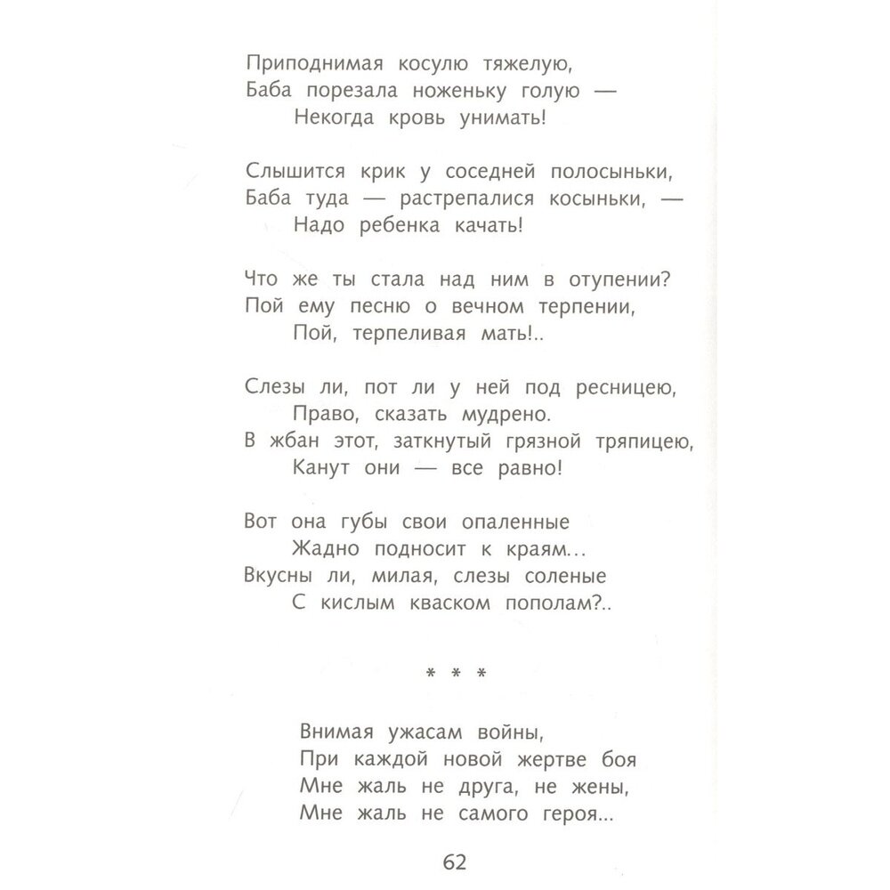 Вся сила и мощь русской культуры, людей, жизни ощущается на страницах сборника стихов. Здесь нету смазливых любовных писем, а тяжелый взгляд на малообеспеченные слои населения. Меня очень тронули многие стихотворения, даже и не выбрать что-то одно. То здесь, то там проскакивают социальные беды и неравное положение в обществе.