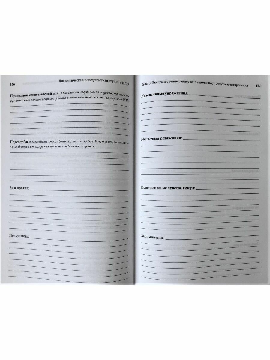 В этой книге описаны практические упражнения, позволяющие преодолеть травму и ПТСР, используя самосознание, толерантность к дистрессу, регуляцию эмоций, диалектическое мышление и навыки межличностной эффективности. Вы научитесь жить в настоящем и идентифицировать вещи и ситуации, которые являются триггерными.