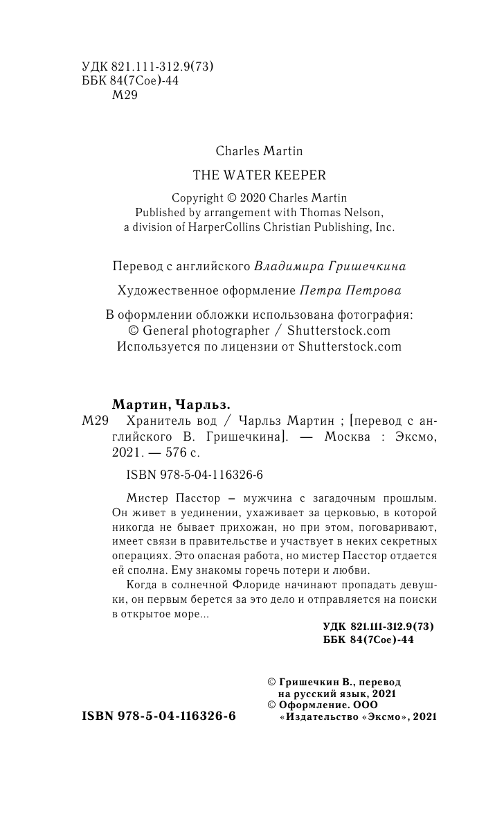 Сервис сравнения цен СкидкаГИД предлагает сравнить цены на товар «Книга: Хранитель вод (Чарльз Мартин); Эксмо, Редакция 1, 2021»
