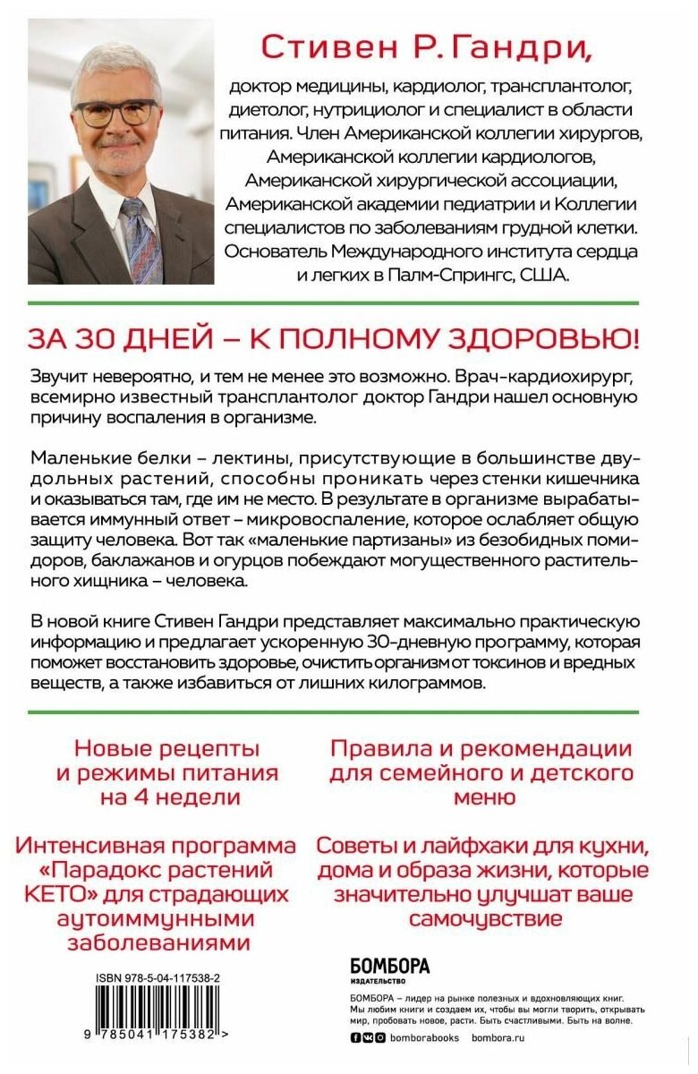 Новая книга доктора Стивена Гандри, знаменитого кардиолога и кардиохирурга, нацелена на ускоренное изучение и практическое применение программы "Парадокс растений". Ее ключевым понятием являются лектины - белки, которые содержатся в злаках, многих фруктах и овощах, орехах, бобовых и молочных продуктах. При попадании в организм человека они вызывают сильные воспалительные реакции, которые могут привести к серьезным проблемам со здоровьем. Многие растительные продукты, которые считаются полезными, на самом деле могут наносить сильнейший вред организму.