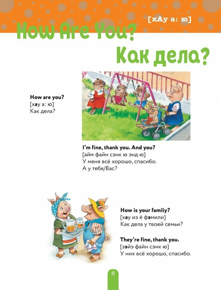 Ребенок знает английские слова, но не может связать их в предложения? С этой книгой он освоит фразы по необходимым для общения темам, научится здороваться, прощаться, знакомиться и рассказывать о себе, своей семье и увлечениях, объяснять, что ему нужно и чего он хочет.В путешествиях эта книга пригодится всей семье: в ней есть фразы для магазинов и ресторанов, прогулок по городу и даже для экстренных ситуаций. Когда ребенок подрастет, фразы пригодится ему, чтобы составлять в школе диалоги.