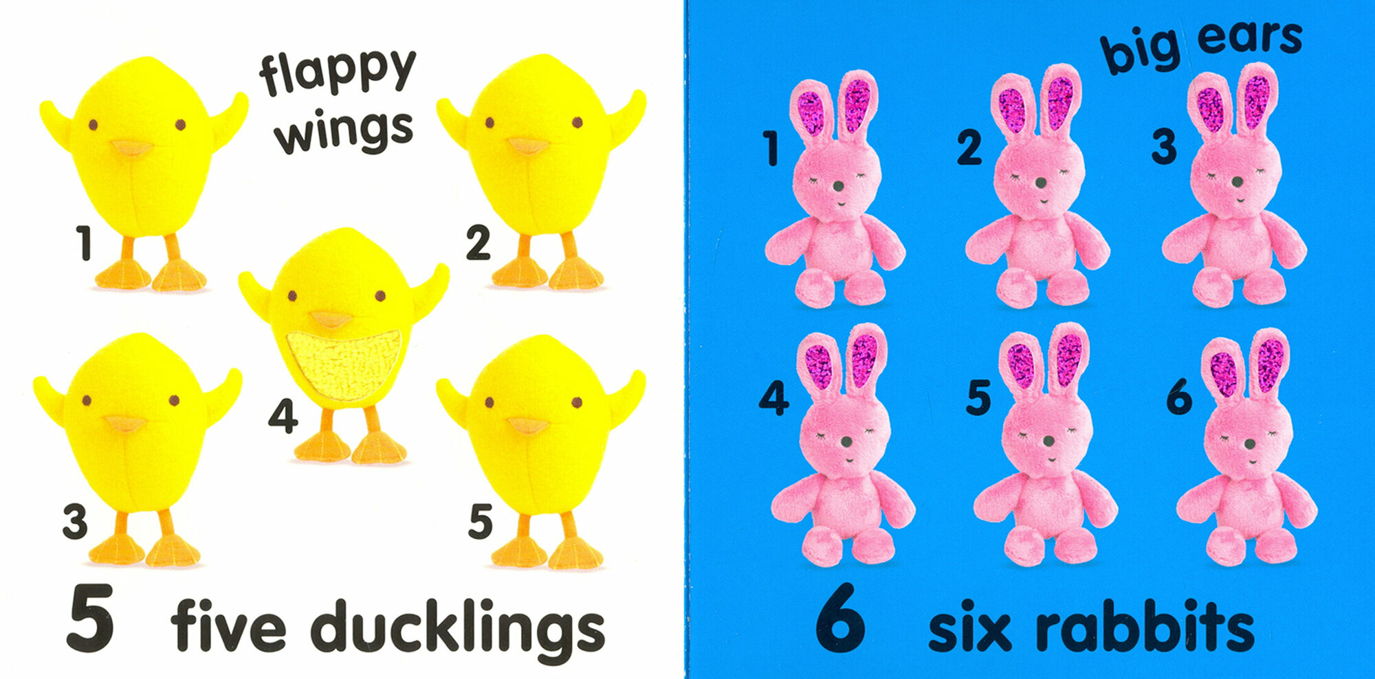 Count from 1 - 10 with this adorable touch and feel book. Each page has a cut-out texture or an eye-catching shiny area that is designed to inspire curiosity in small children and stimulate their senses!