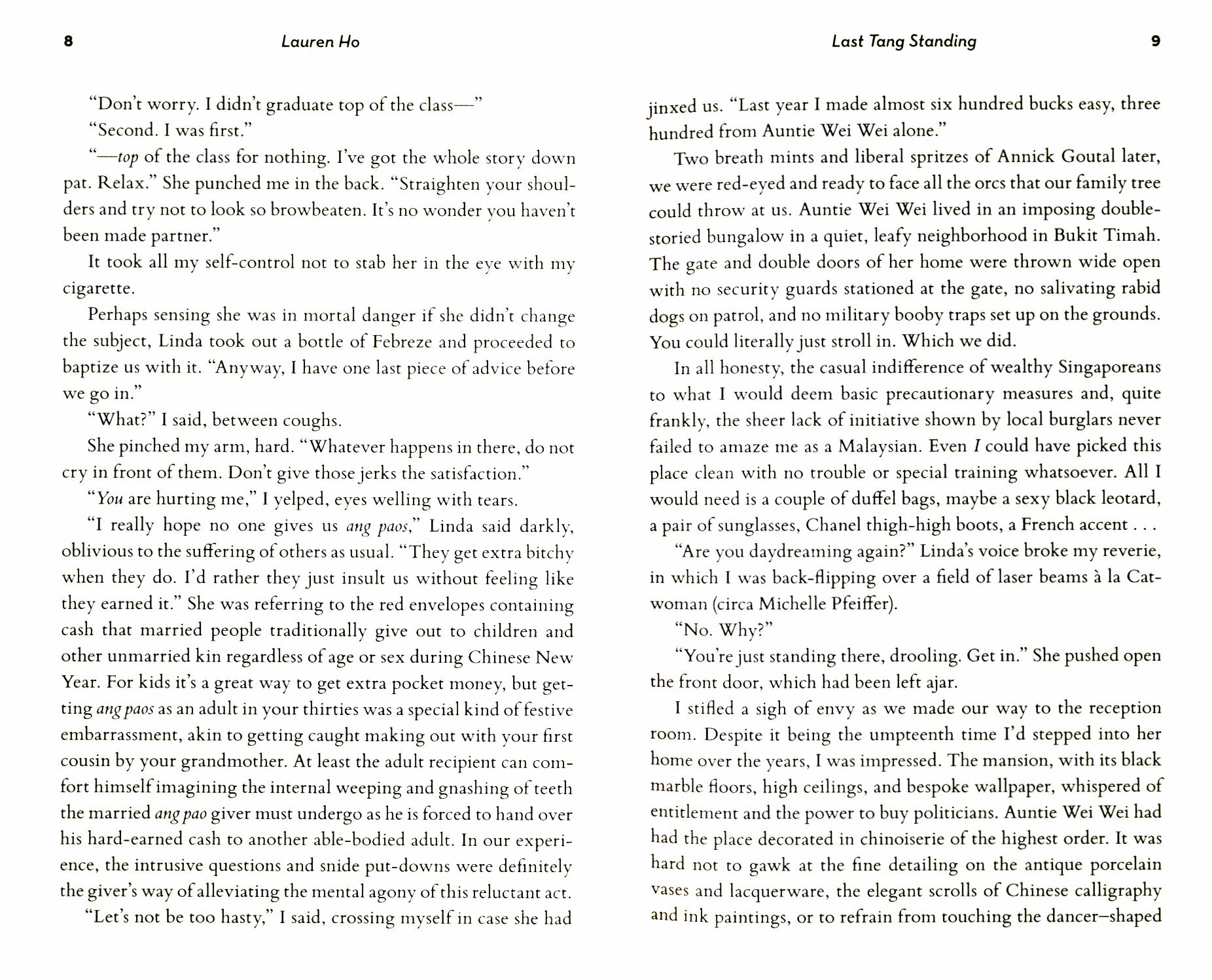 Автора сравнивают с Кевином Кваном, но у них мало общего. Кван обожает своих азиатов. В его понимании у них может не быть вкуса, но жить они умеют на полную катушку. Он любит всех своих героев, даже самых необычных. Лорен Хо очень скептично оценивает азиатов, она смотрит на них глазами европейца.