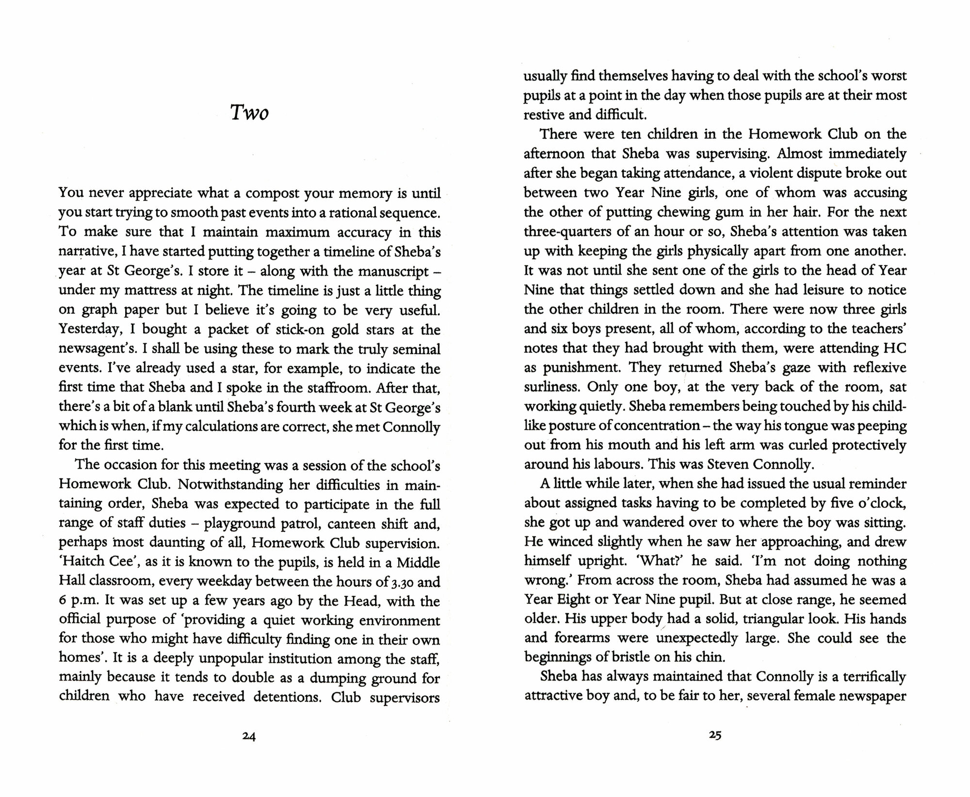 From the day that Sheba Hart joins the staff at St George's, history teacher Barbara Covett is convinced that she has found a kindred spirit. When Sheba is discovered having an illicit affair with one of her pupils, Barbara appoints herself Sheba's chief defender. Yet all is not as it first appears in this dark story and as Sheba will eventually discover, a friend can be as treacherous as any lover.