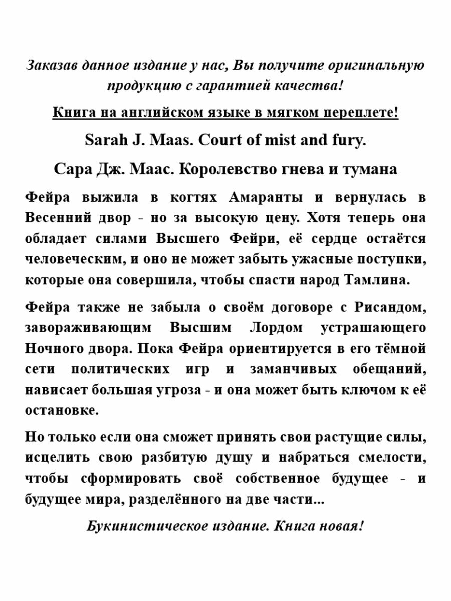 На сегодняшний день товар «Книга: A Court of Mist and Fury ADULT (Сара Джанет Маас); Bloomsbury, 2020» можно купить с кешбеком в 3 магазинах: book24, Читай-город, Буквоед