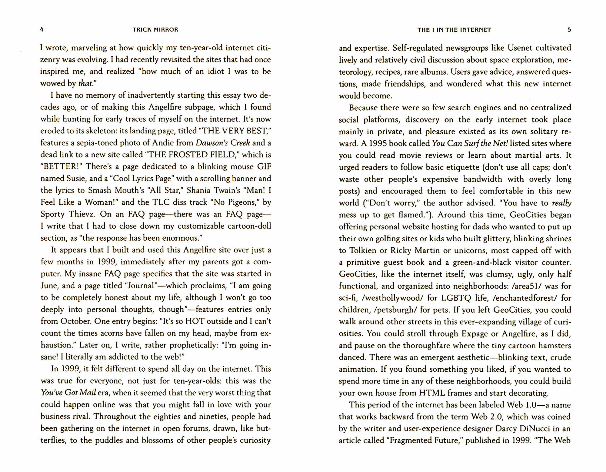 Offering nuanced and witty reflections on feminism, reality TV, the internet, drugs, identity and more, Trick Mirror is a multifaceted, thought-provoking and entertaining response to our zeitgeist - a must-read for anyone interested in the way we live and think today.
