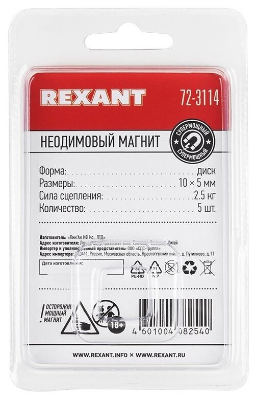 | Материал | Неодим-Железо-Бор (NdFeB) |