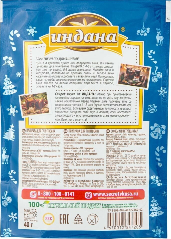Приправа Индана для глинтвейна 40г Русская Бакалейная Компания