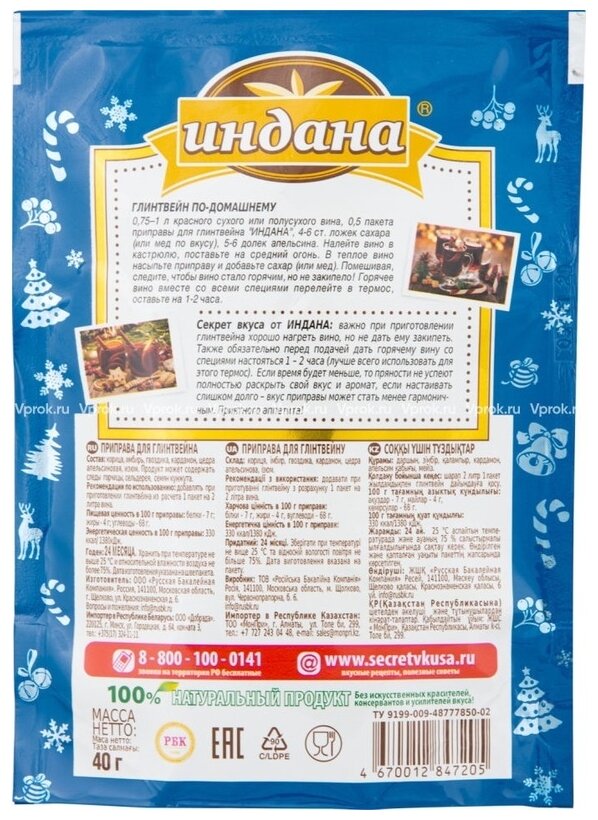 Сервис сравнения цен СкидкаГИД предлагает сравнить цены на товар «Приправа Индана для глинтвейна 40г Русская Бакалейная Компания»