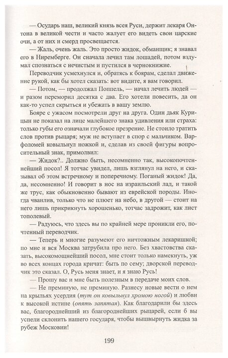 Чудесная книга! В юности оставила незабываемое впечатление. Может, потому, что сама я - врач. Она не менее трагична, чем "Ледяной дом", потому что кончается отнюдь не хэппи эндом... Кстати, у героя был реальный прототип, именно так и погибший - его убили родственники пациента, которого ему не удалось вылечить. Удивительно было узнать, что во оны времена (увы, речь идет не о Древней Греции, где врачи-асклепиады были в чести... об этом и о них самих есть роман американского нейрохирурга У. Пенфильда "Факел") профессия врача считалась не почетной, а позорной. Вот и Антона сделал врачом человек, тоже врач, отомстивший таким образом его отцу за оскорбление... И вся недолгая и несчастливая жизнь Антона - постоянное соприкосновение с ненавистью. Ведь и в Московии он - иноверец, чужак. Басурман, и все тут. А он добр, жертвенен, любит и любим. Почему же все кончается "плохо"? Ответ дал Вальтер Скотт в предисловии к роману "Айвенго", отвечая прекрасным читательницам на вопрос, почему женой отважного рыцаря Уилфреда Айвенго стала не героическая и жертвенная Ревекка, а куда более блеклая Ровена. Да потому, что главные награды за праведность люди получают не в этой жизни. История врача Антона - тому пример. Шесть веков отделают нас от него, реального. И два века - от него, как героя романа. А мы его помним. И любим...