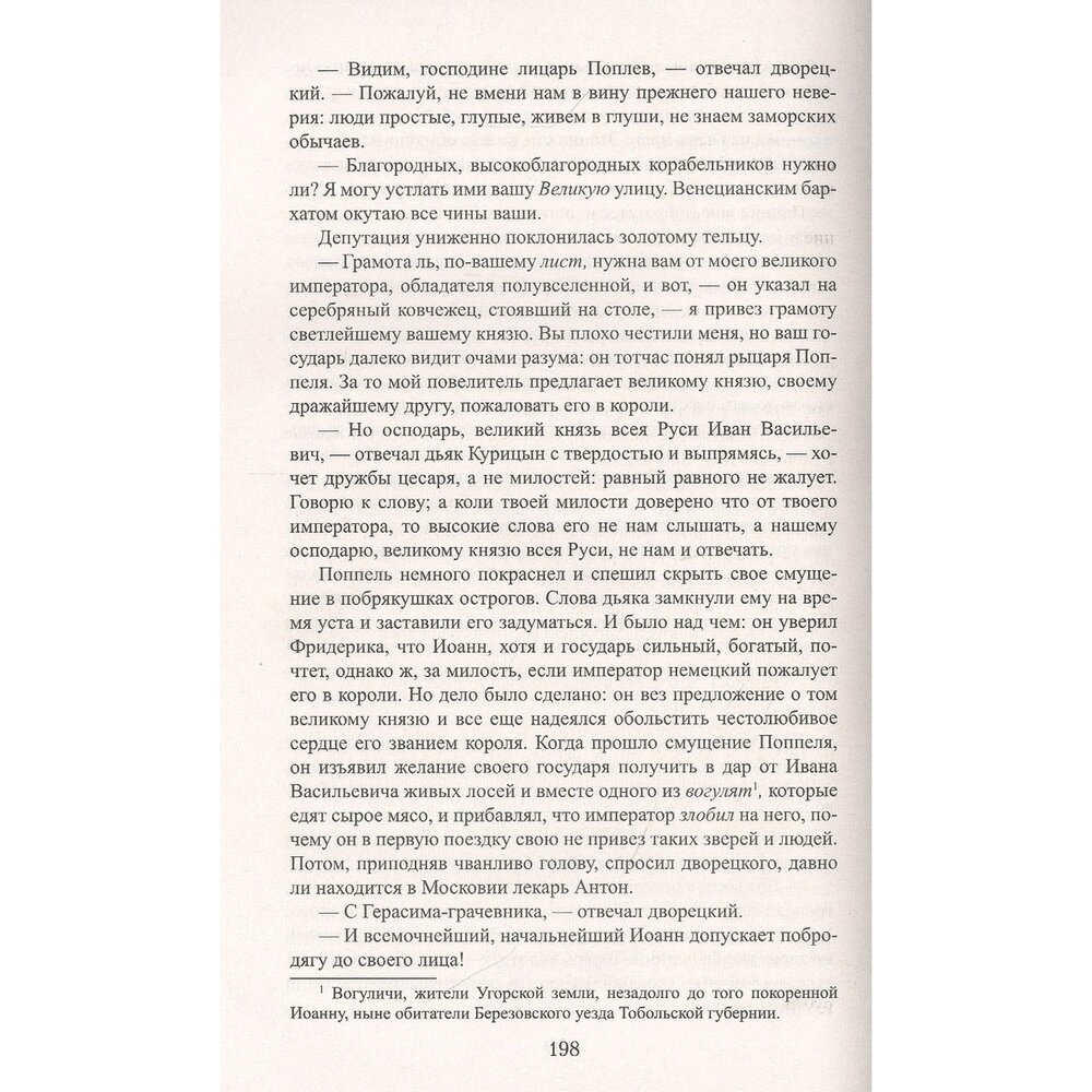 Знаком был с другими работами Лажечникова, но прочитав "Бусурмана" смело могу сказать - этот роман превзошёл все предыдущие. Я бы сказал - вершина творчества,и, мне кажется, незаслуженно забытое произведение. Какая сила чувств у главных героев, какой характер, стержень внутри! И всё это на фоне нашей родной истории России времён Ивана Великого! Автору удалось красочными мазками передать дух и атмосферу, царившую в Московском княжестве, мы видим молодое, сильное и дерзкое государство, активно развивающееся, недавно сбросившее с себя монголо-татарское иго. Судьба главного героя, Антона Эренштейна, прибывшего из Италии, складывается не просто, но он уверенно идёт к своему счастью сквозь интриги. Ему сочувствуешь, сопереживаешь, потому что он понятен современному читателю, несмотря на то, что жил в 15 веке. Язык автора достаточно лёгок, сюжет интересный, лихо закрученный.