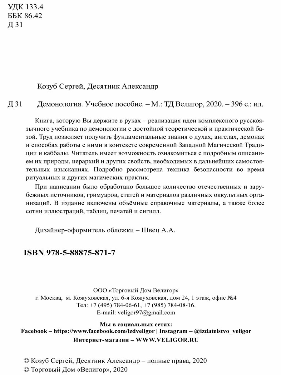 Сервис сравнения цен СкидкаГИД предлагает сравнить цены на товар «Книга: Демонология. Учебное пособие (Козуб Сергей, Десятник Александр); Велигор, 2021»