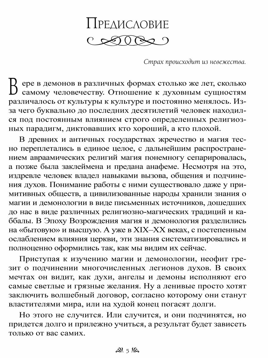 Книга, которую Вы держите в руках - реализация идеи комплексного русскоязычного учебника по демонологии с достойной теоретической и практической базой. Труд позволяет получить фундаментальные знания о духах, ангелах, демонах и способах работы с ними в контексте современной Западной Магической Традиции и каббалы. Читатель имеет возможность ознакомиться с подробным описанием их природы, иерархий и других свойств, необходимых в дальнейших самостоятельных изысканиях. Подробно рассмотрена техника безопасности во время ритуальных и других магических практик.
