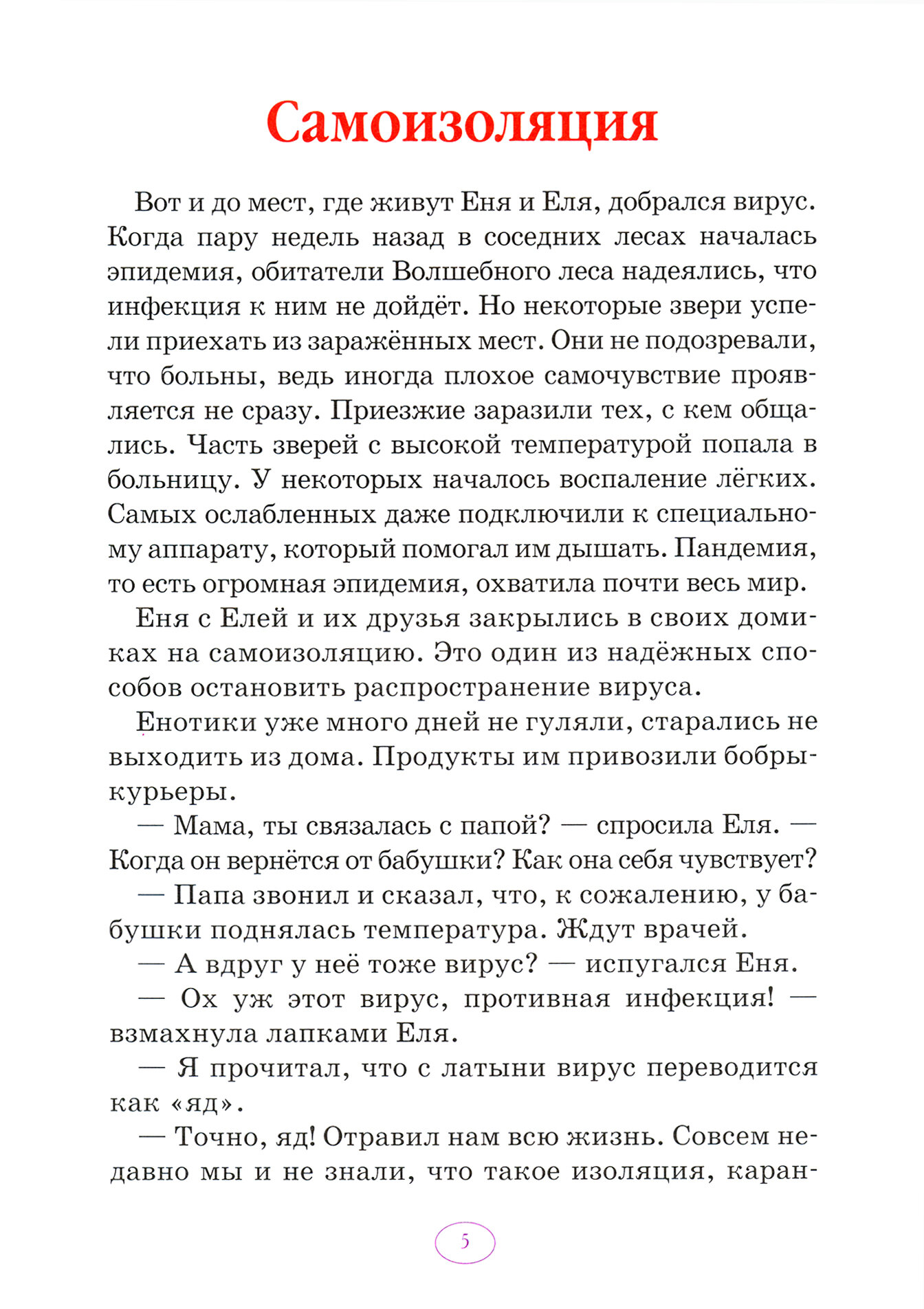В новой книге из популярной серии про Еню и Елю, енотиков из Волшебного леса, герои узнают, как справляться со скукой, чем занять себя, если сидишь дома, с помощью каких игр и упражнений можно быстро создать позитивный настрой, что делать, чтобы не поддаться вирусам и болезням, что такое здоровый образ жизни и как его вести весело и легко.