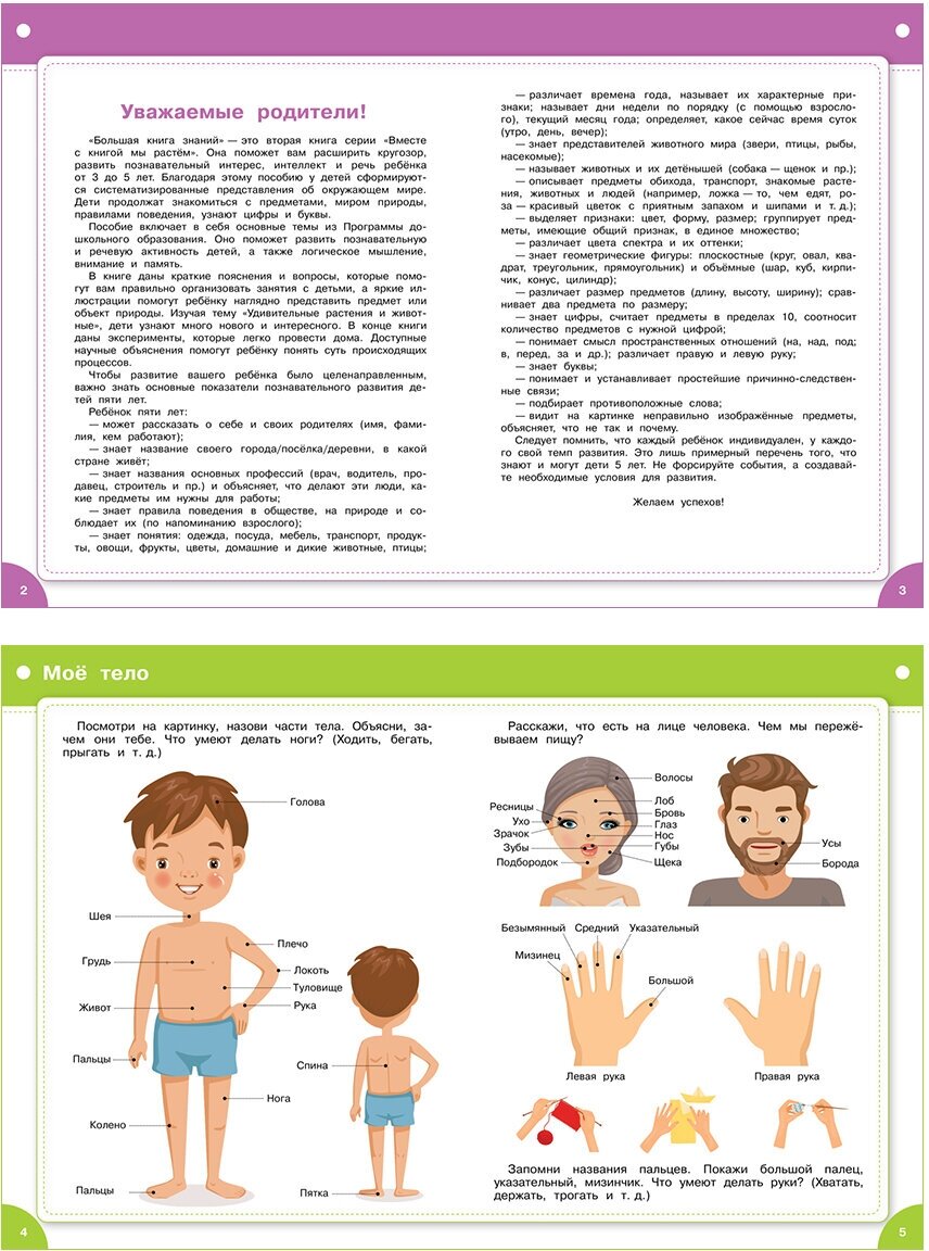 "Большая книга знаний" - это вторая книга серии "Вместе с книгой мы растём". Она поможет вам расширить кругозор, развить познавательный интерес, интеллект и речь ребёнка от 3 до 5 лет. Благодаря этому пособию у детей сформируются систематизированные представления об окружающем мире.