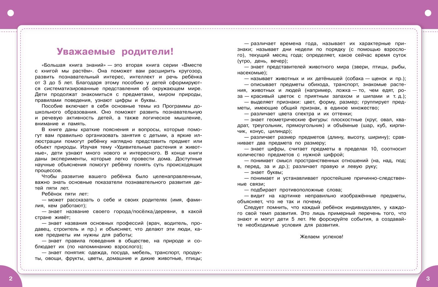 - Для целенаправленного процесса обучения в книге приведены показатели познавательного развития ребенка 5 лет.