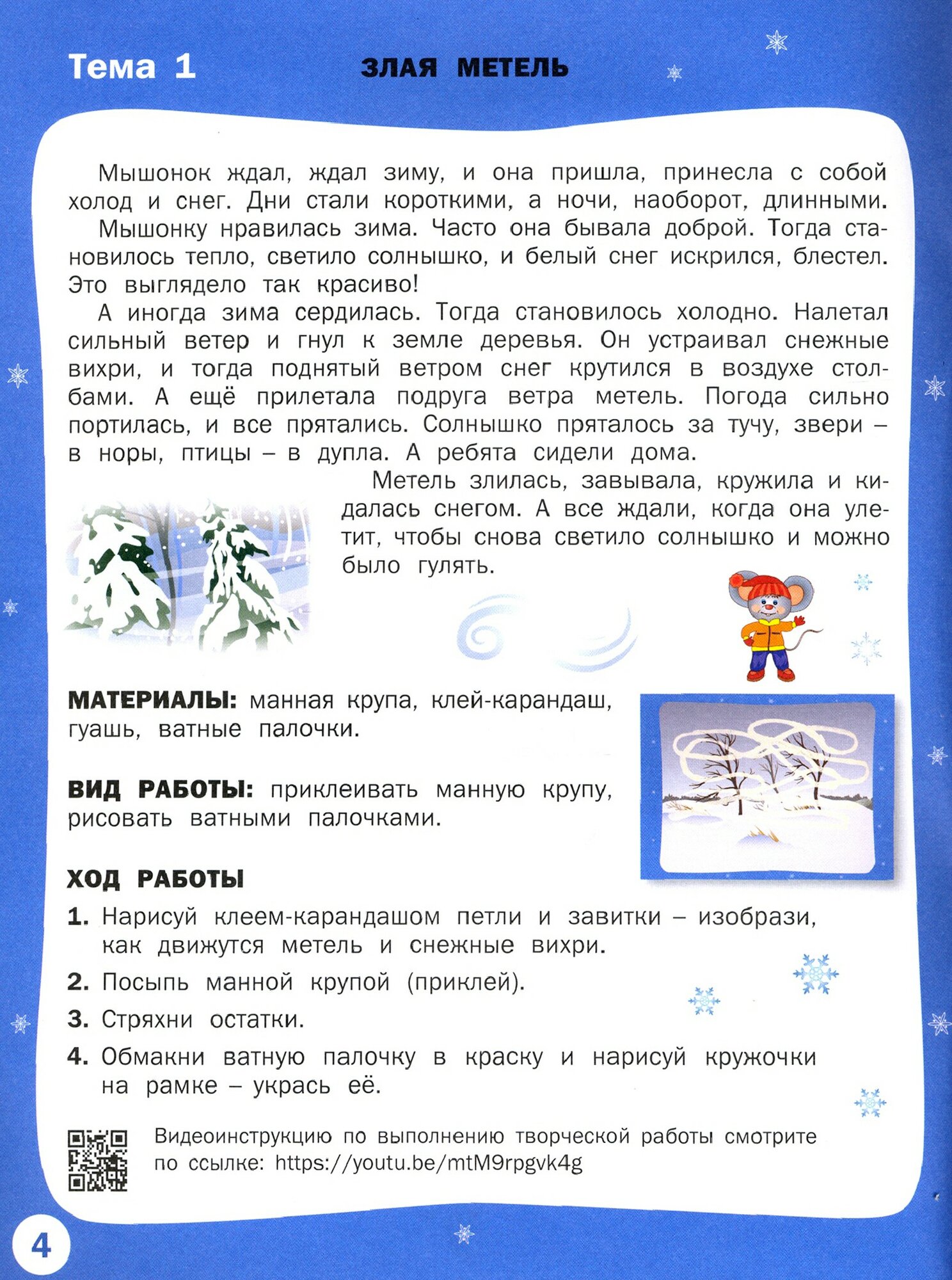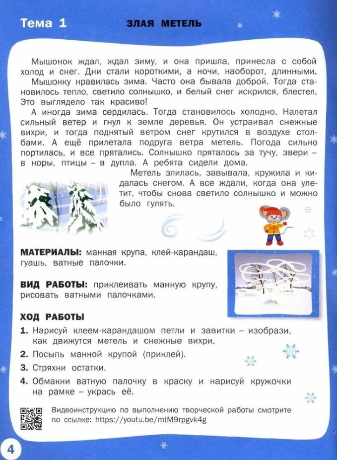 Замечательное пособие для знакомства с явлениями природы по сезонам, развития творческих способностей и мелкой моторики. Ребенка привлекает умный и добрый Мышонок, нравятся его познавательные истории, он с удовольствием помогает своему маленькому другу и создает красивые картинки. Готовые картинки смотрятся ярко и эффектно. Они украшают дом, становятся поводом для общения и служат прекрасным подарком.