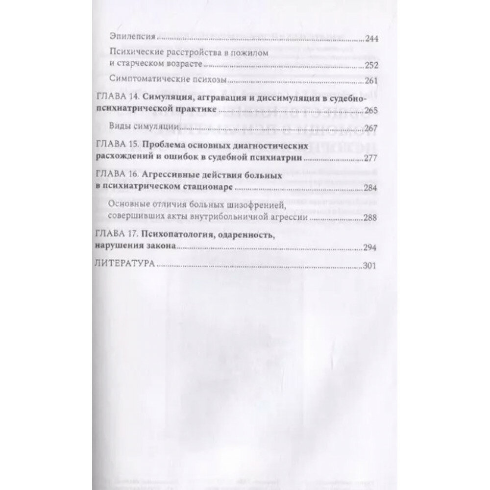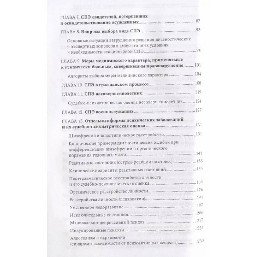 С учетом того, что сочетание юридических познаний с медицинскими встречается редко, в книге подробно изложены клинические аспекты нарушения психики и отдельных форм психических заболеваний. Большое внимание уделено организационным вопросам судебной психиатрии в России, судебнопсихиатрическим подходам к различным формам психических расстройств и проявлениям психопатологии в сложных возрастных группах - несовершеннолетних и пожилых подэкспертных. Уделено внимание экспертизам в уголовном и гражданском процессе. Подробно описаны критерии социальной опасности психически больных и рекомендуемые меры медицинского характера. Это должно помочь формированию правильного подхода к анализу и выводам о заключениях судебно-психиатрических экспертов в процессе следственных и судебных действий.