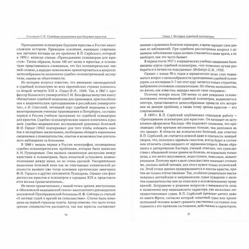 Я по образованию не юрист, а психолог, но решила приобрести эту книгу, чтобы глубже разобраться в аспектах судебной психиатрии, формах психических заболеваний и особенностях их оценки при экспертизе. Книга по содержанию очень хорошая, есть картинки, иллюстрирующие психические расстройства, уделено преимущественное внимание психическим заболеваниям в разрезе экспертизы, но читать мне ее достаточно сложно, поскольку язык официальный, как в учебниках, а я, увы или не увы, но уже не ученица. Однако, на таких как я она и не ориентирована, поэтому для студентов или изучающих тему впервые может стать неплохой базой.