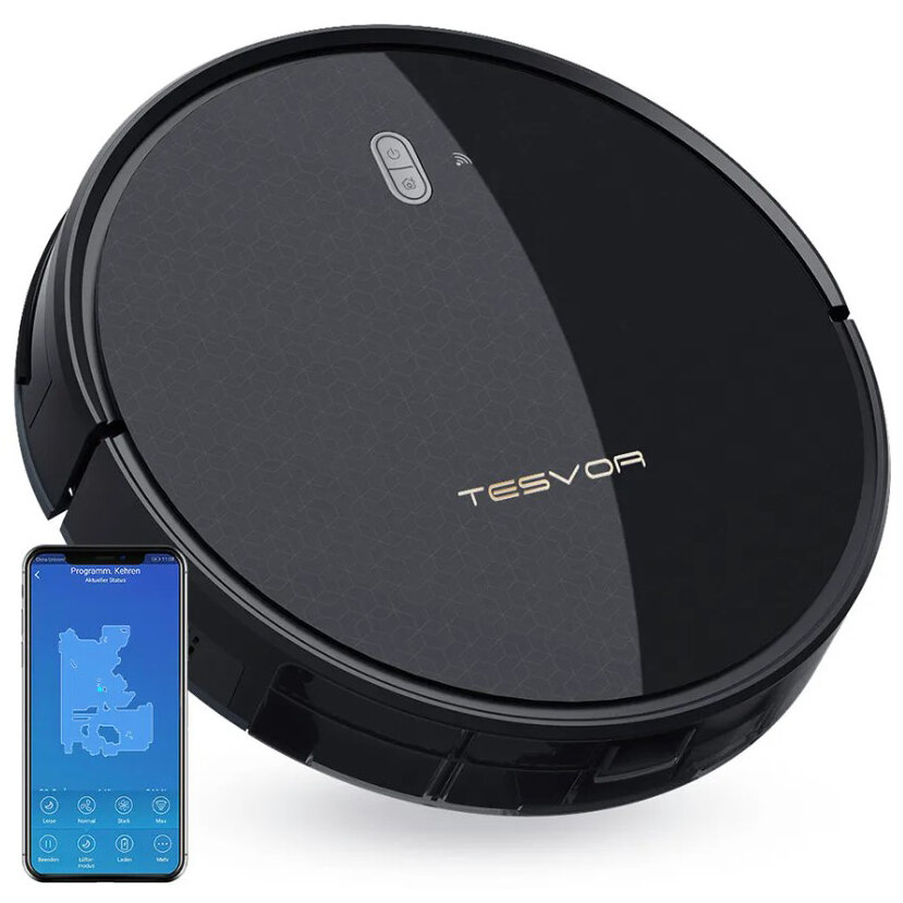 Аккумуляторный робот-пылесос Tesvor может строить виртуальную карту. А бесплатное для скачивания приложение делают данную модель умным и полезным помощником по уборке в доме. Использование бортовой камеры и нескольких встроенных датчиков помогает качественно создавать и планировать лучшие пути для очистки, а также избегать препятствия. Мощность всасывания достигает 57 Вт, а мощность устройства 28 Вт.