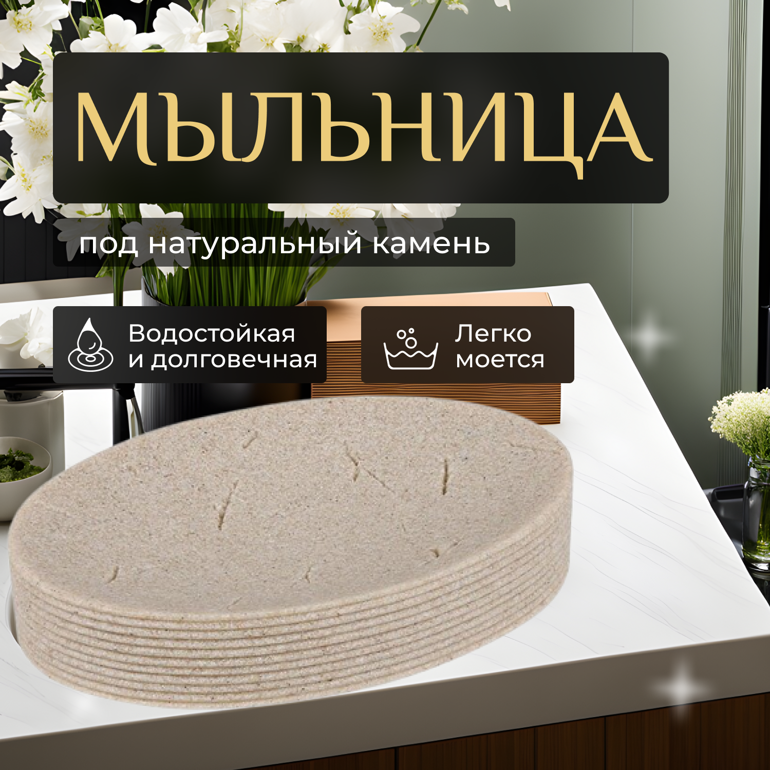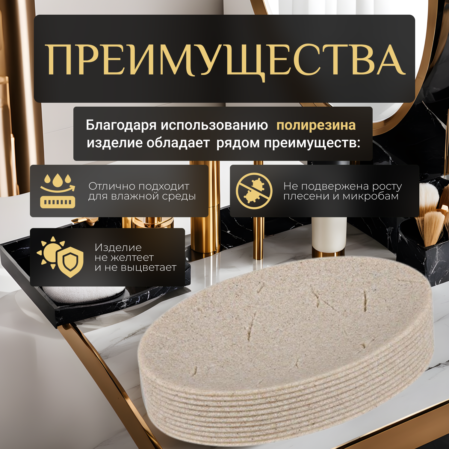 Необычный дизайн, созданный с помощью композитного материала: полирезина под натуральный камень.Благодаря такой структуре изделие имеет низкую теплопроводность, приятное на ощупь, а также устойчивок влаге и повышенным температурам.Преимущества товаров для ванной комнаты из полирезина:- Водоустойчивость. Идеально подходят для любой среды с повышенной влажностью.- Антибактериальность. Непористая структура обеспечивает устойчивость к развитию плесени и микробов.- Прочность. Не деформируется, не бьется, не трескается, не облазит и не царапается.- Защита от УФ-излучения предотвращает пожелтение и выцветание.- Экологичность: нет запаха и каких-либо выделений токсичных или раздражающих веществ.- Экономичность: любое изделие легко очищается водой с добавлением мыла.Размер: 130х96х20 мм.---С этим товаром покупают:35-105031 Диспенсер (дозатор) для мыла WHITESTONE, белый, PERFECTO LINEA35-105033 Стакан WHITESTONE, белый, PERFECTO LINEA35-105035 Ершик с подставкой WHITESTONE, белый, PERFECTO LINEA---