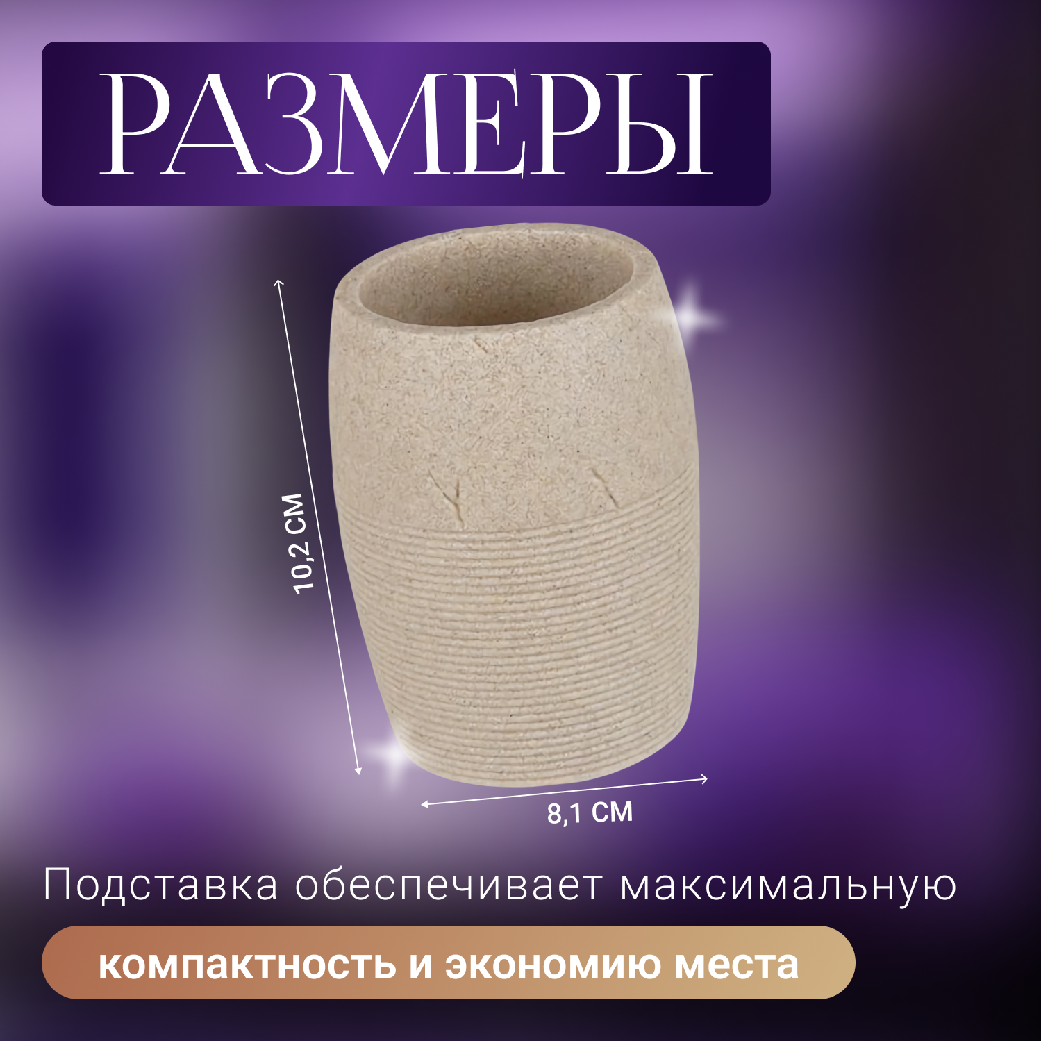 Необычный дизайн, созданный с помощью композитного материала: полирезина под натуральный камень.Благодаря такой структуре изделие имеет низкую теплопроводность, приятное на ощупь, а также устойчивок влаге и повышенным температурам.Преимущества товаров для ванной комнаты из полирезина:- Водоустойчивость. Идеально подходят для любой среды с повышенной влажностью.- Антибактериальность. Непористая структура обеспечивает устойчивость к развитию плесени и микробов.- Прочность. Не деформируется, не бьется, не трескается, не облазит и не царапается.- Защита от УФ-излучения предотвращает пожелтение и выцветание.- Экологичность: нет запаха и каких-либо выделений токсичных или раздражающих веществ.- Экономичность: любое изделие легко очищается водой с добавлением мыла.Размер: 81х81х102 мм.---С этим товаром покупают:35-503100 Диспенсер (дозатор) для мыла YELLOWSTONE, бежевый, PERFECTO LINEA35-503400 Мыльница YELLOWSTONE, бежевая, PERFECTO LINEA35-503500 Ершик с подставкой YELLOWSTONE, бежевый, PERFECTO LINEA---