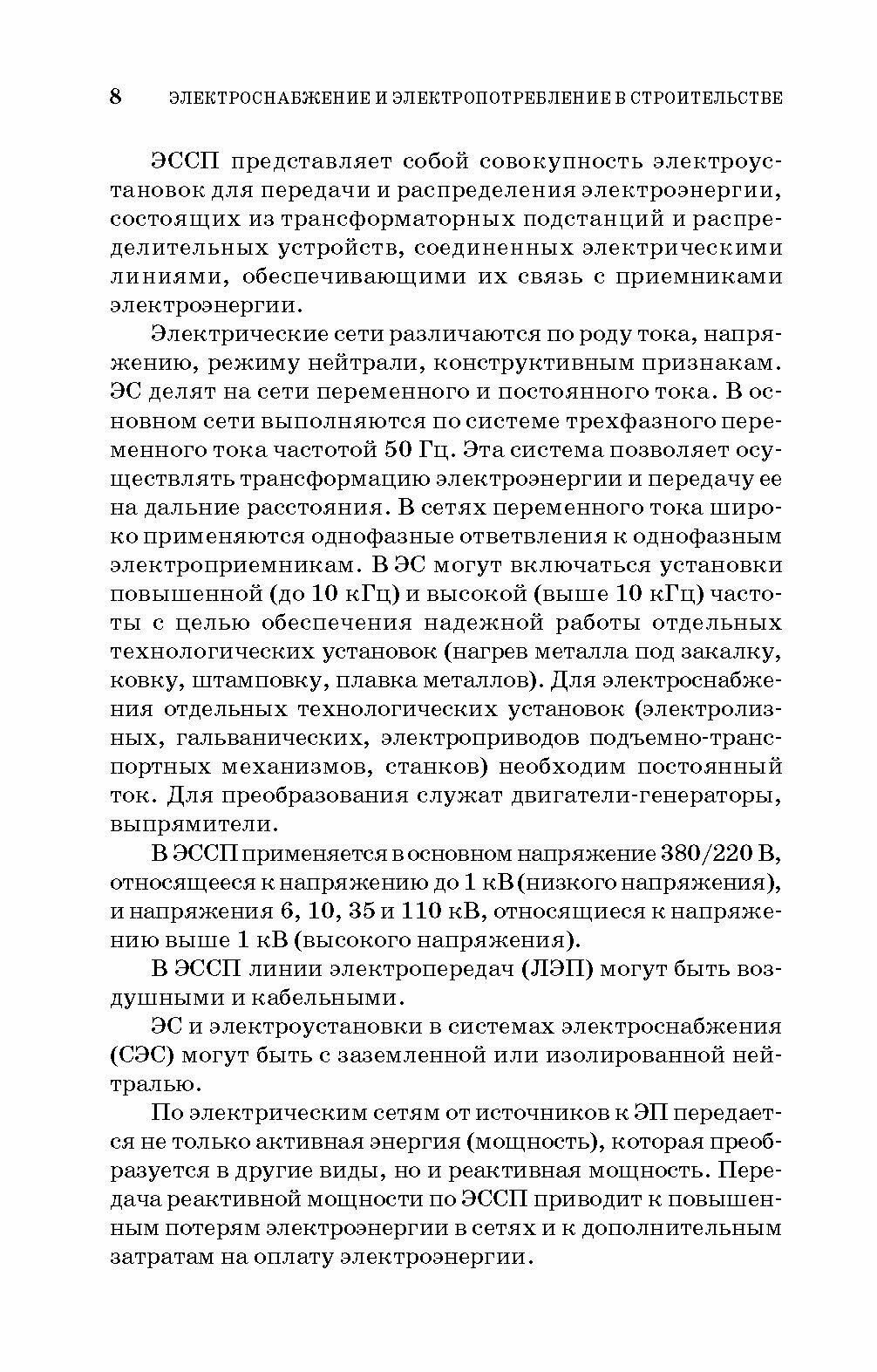 Рассмотрены вопросы электроснабжения и электропотребления на объектах строительства. Рассмотрены вопросы применения электрической энергии в строительстве. Приведены сведения об электрических нагрузках и методах их расчета, распределении электрической энергии. Описаны конструкции электрических сетей и подстанций. Рассматривается выбор электрооборудования в системах электроснабжения, принципы и методы расчета режимов электрических сетей, компенсации реактивной мощности, защиты и автоматики в системах электроснабжения, качество электрической энергии и надежности электроснабжения, режимы электропотребления. Предназначается в качестве учебного пособия для студентов, обучающихся по направлению "Строительство" (профили "Промышленное и гражданское строительство" и "Теплогазоснабжение и вентиляция"). Может быть полезным специалистам, занятым проектированием и эксплуатацией систем электроснабжения объектов строительства, а также специалистам, выполняющим строительные работы.