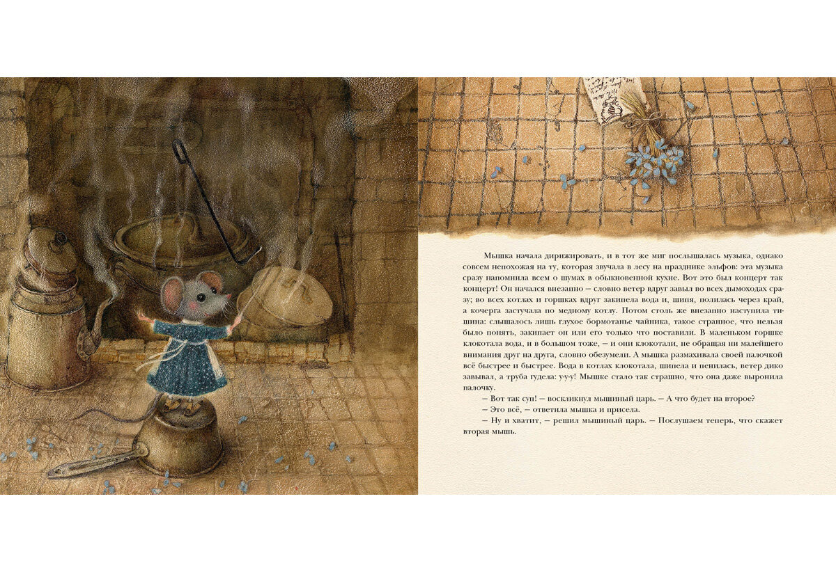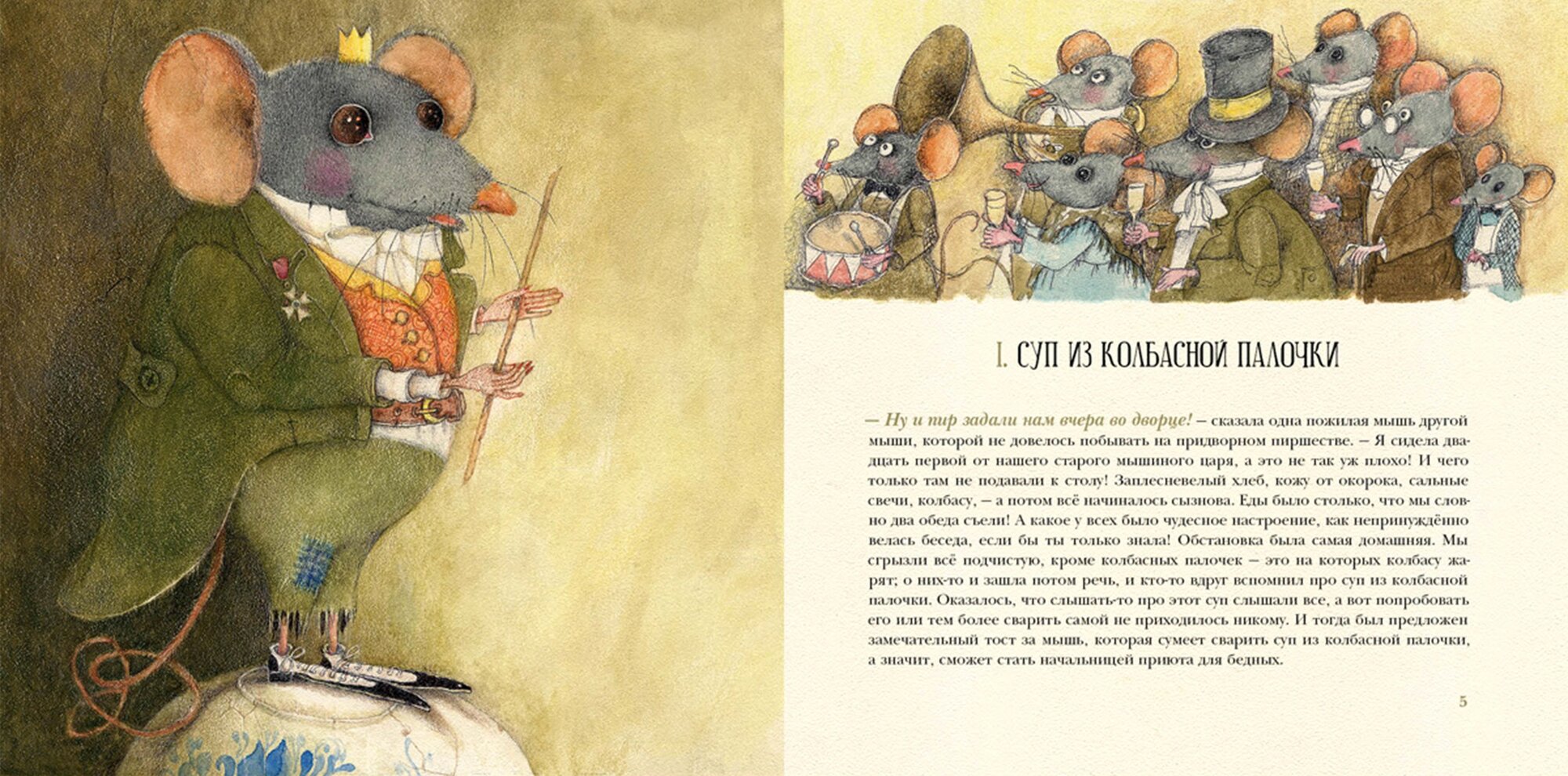 Перед вами одна из самых необычных историй великого сказочника. Однажды на большом пиру старый мышиный царь заявил во всеуслышание, что сделает царицей ту мышь, которая сварит самый вкусный суп из колбасной палочки. Но где взять заветный рецепт, способный покорить сердце хвостатого монарха? Четыре шустрые мышки отправляются в дальний путь, полный испытаний. Накануне объявленного срока все собрались на царской кухне, но… вернулись только три мышки - о четвёртой ни слуху ни духу, а ведь назначенный день вот-вот наступит…
