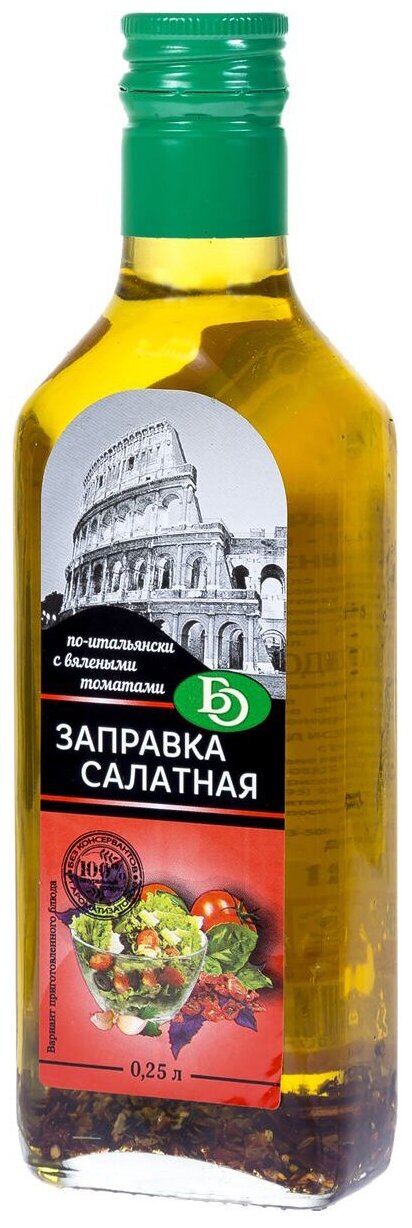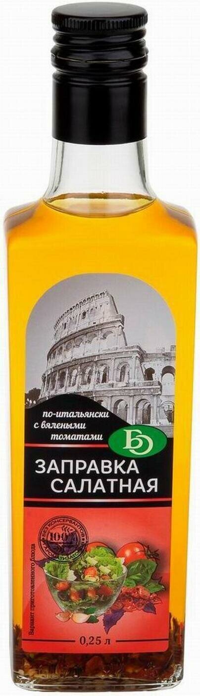 Заправка салатная по-итальянски с вялеными томатами 250 мл - это уникальный продукт, который дополнит и оживит любой ваш салат.